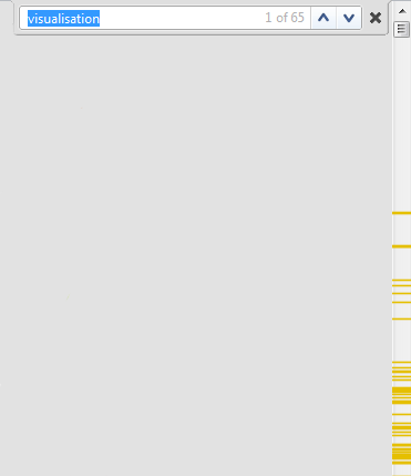 When you run a ‘find’ operation for a given term, the vertical scroll bar highlights shows you where, on the current page, instances of the keyword you searched for appear, allowing you to quickly navigate around the search results.