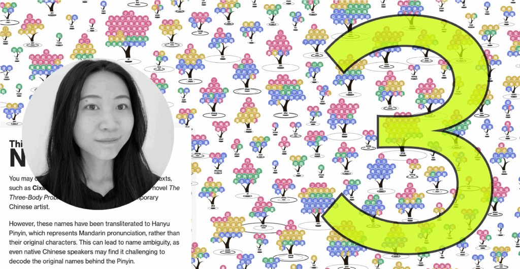 In this latest episode, I am delighted to welcome Liuhuaying Yang, a Data Visualisation Designer who works at the Complexity Science Hub Research Center in Vienna, Austria. We explore the story behind Liuhuaying’s unique data visualisation ‘Not My Name‘, which explores the process and components of translating Chinese names into Pinyin.