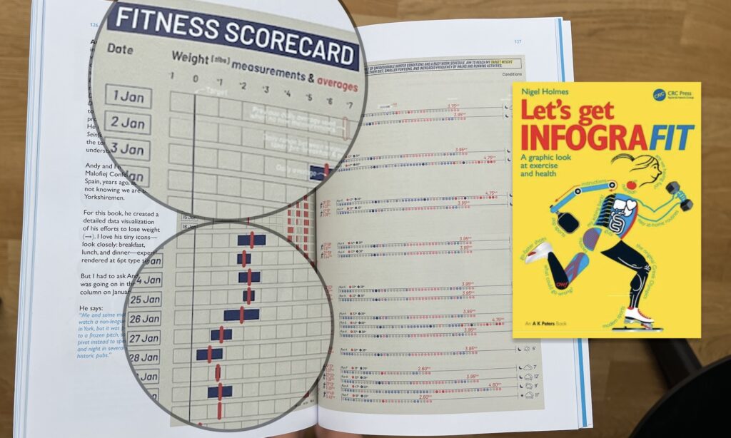 I’m thrilled to see a visualisation I created included in a new graphics book by Nigel Holmes titled ‘Let’s Get Infografit: A Graphic Look at Exercise and Health’